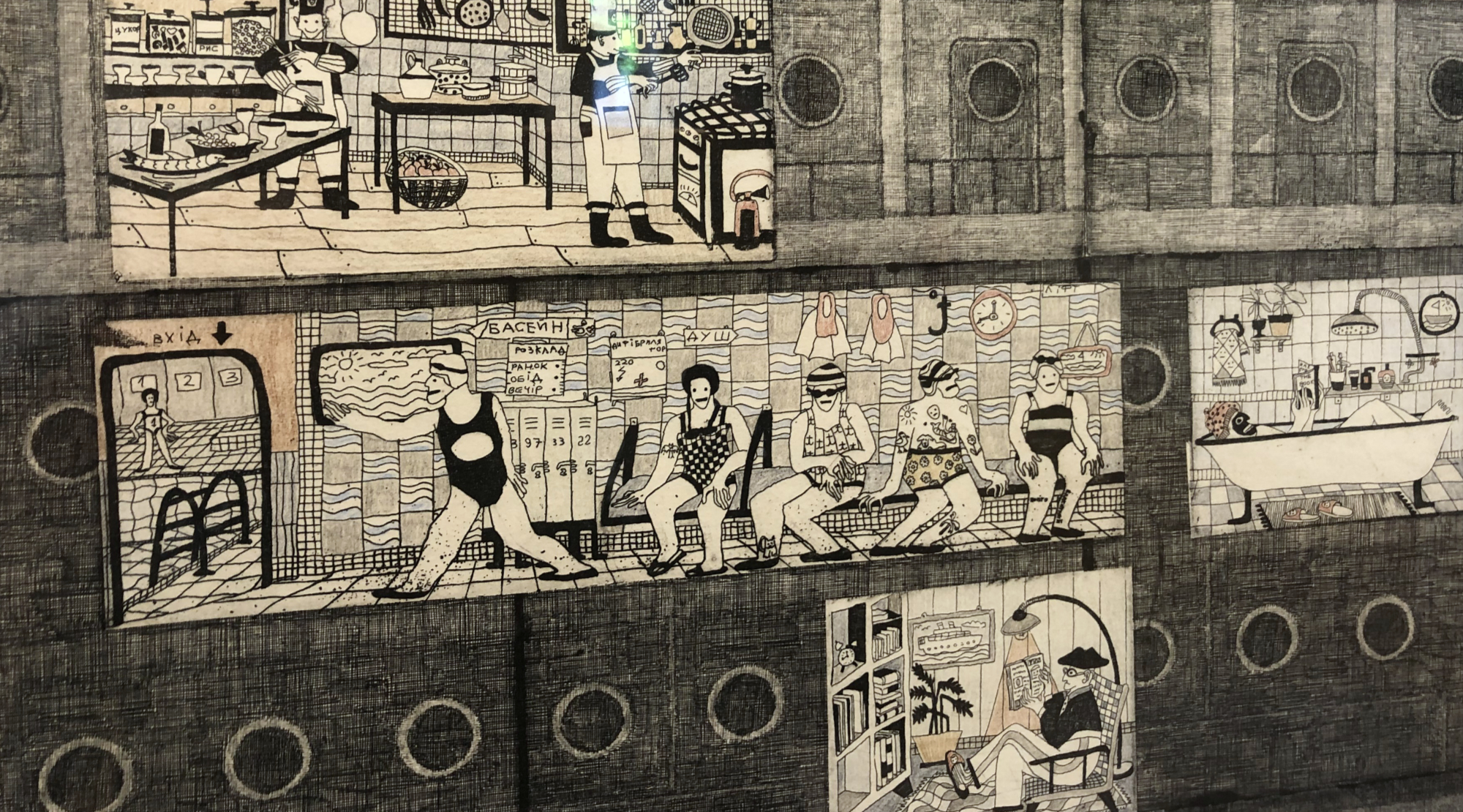 darunter Radierung, Mosaik, Textilien und Installationen. Ein